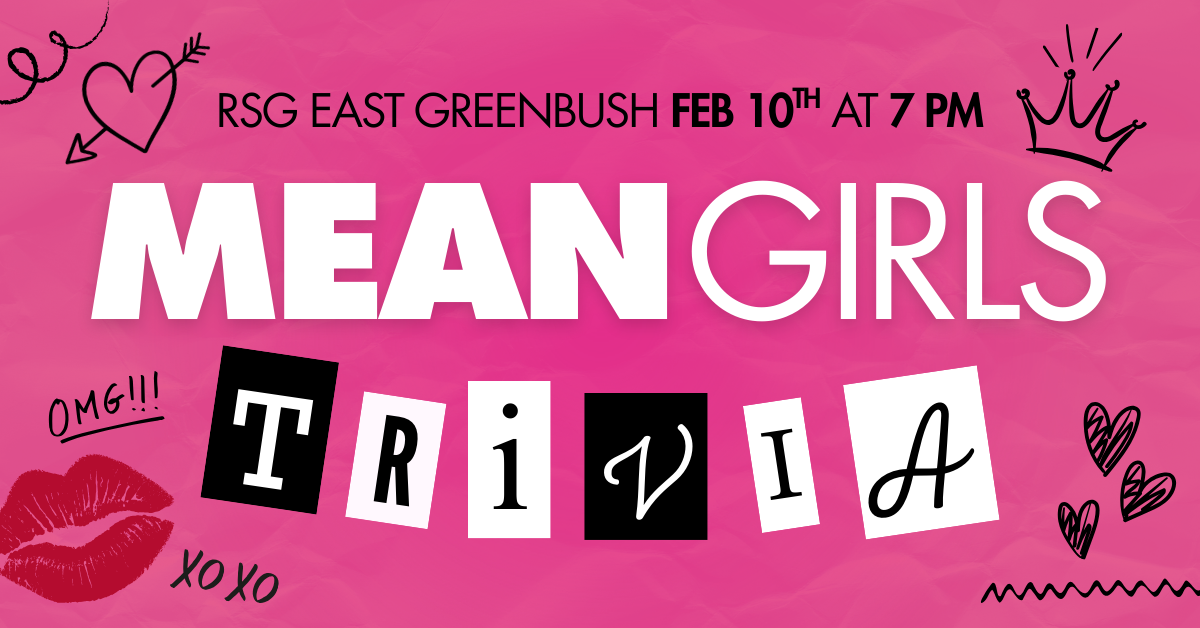Join us for a night of Mean Girls trivia! 💋 From iconic scenes to burn book entries, test your Mean Girls knowledge... and don't forget to wear your pink! 👚 Play along to win prizes and enjoy $6 tacos and margaritas! 🌮